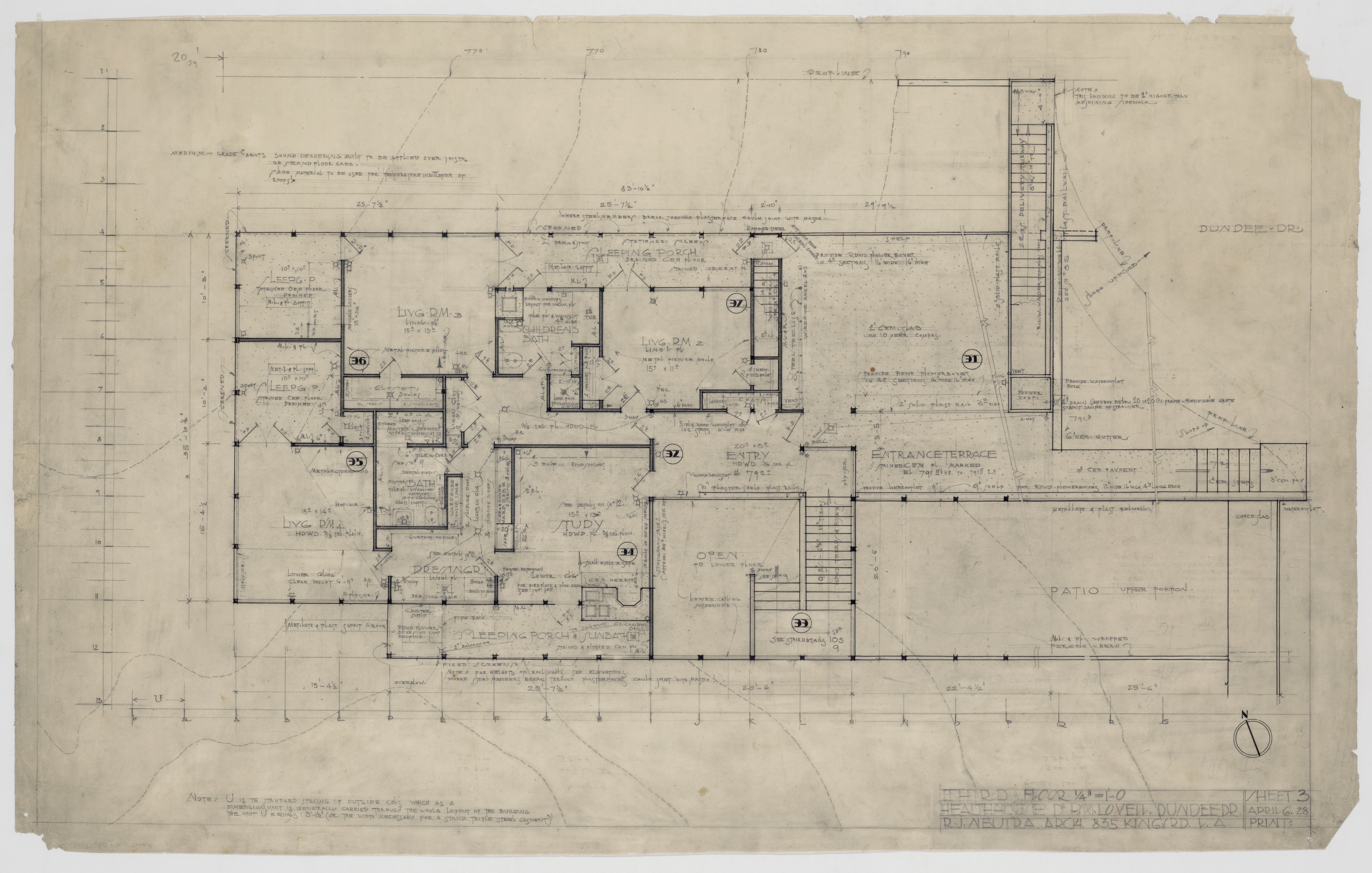For Philip Johnson and Alfred Barr, reviewing entries for MOMA’s 1932 show on the International Style, Neutra’s Lovell Health House must have been a godsend. While every other building to be exhibited occupied relatively level ground, Neutra’s steel-framed house flew off the hillside into an LA canyon that is part Raymond Chandler country, part loose-limbed, insolent coyotes, and always Latino gardeners in battered trucks who know more than you ever will. It is both a place and a mindset that brittle East Coast critics, let alone the Europeans, don’t get, not really, and for sure didn’t get it in 1929 … and here was Neutra outdoing everyone. This “city Lovell” (not the “beach” Lovell) is less a bird, however, than an ocean liner sailing through a space, not water, very Corbu Vers, a point that can’t have escaped Barr/Johnson. The house is, perhaps, only momentarily tethered to a hill, shifting planes of white and dark, solid and void, exemplifying the asymmetry the MOMA boys were so keen on. (Neutra was too, but his asymmetry was based on biology, not on being politically correct.) “Cheap and thin,” Wright complained, disparaging Neutra to the curators, and if you think about it, “cheap” is not a bad thing to be, after all: we could all use a little more cheap … and “thin”—well, in earthquake country, thin and light might be rather a good idea, no? (Wasn’t proposing a one-story structure, framed in steel, glass, and wood—rather proposing a traditional multi-story pile of unreinforced masonry—the reason that the zealot Neutra won the commission for the addition to the Corona Bell School a year after the Long Beach Earthquake of 1933 that destroyed so many schools?)